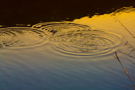 Ripples in the pond that form concentric circles to the sunset. Warm colors for the golden light of the sun