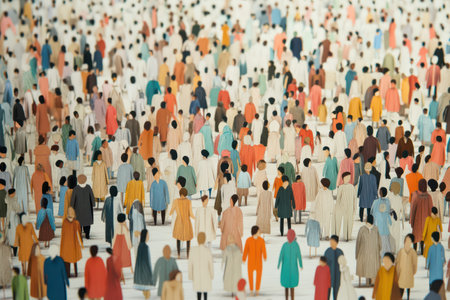 A stunning aerial view of a diverse crowd surrounding a single figure, showcasing unity, individuality, and vibrant colors in a modern artistic design.