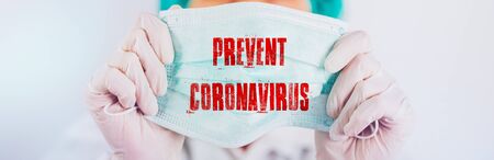 Man wearing protection face mask against coronavirus or COVID-19. Banner with copyspace for medical concept