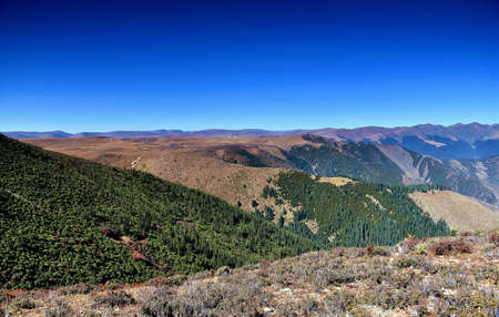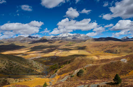 Beautiful mountain view with blue sky at Yading national reserve at Daocheng County, in the southwest of Sichuan Province, China.