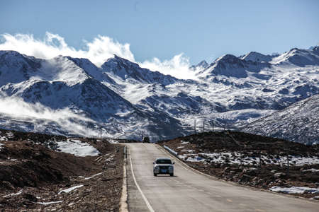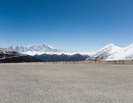 empty asphalt road with snow mountain in tibet plateau, the background is namcha barwa peak