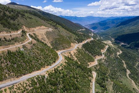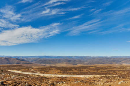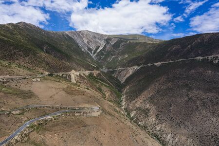 Dusty mountain road from Eastern Tibet to Yunnan province in China