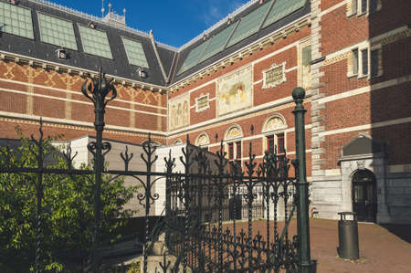 Amsterdam, The Netherlands, October 11, 2018: one of the walls of Rijks museum with iron-shod fence