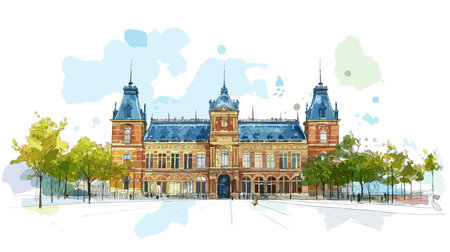 Rijksmuseum. Rijksmuseum hand drawn watercolor vector illustration