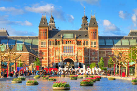 Amsterdam, Netherlands - April 12, 2016: The Rijksmuseum is a Dutch national museum dedicated to arts and history in Amsterdam.
