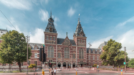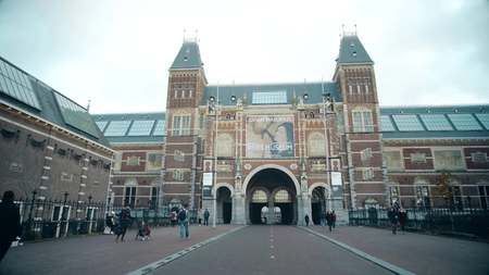 Hyperlapse of the Rijksmuseum, a famous tourist attraction in Museum Square, Amsterdam. Netherlands