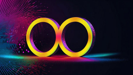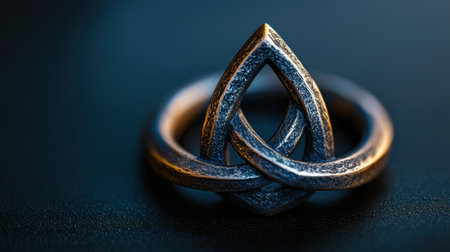 Three interconnected rings, rendered in a 3D style, are the focal point of this image. The rings display a metallic sheen with gradients of color. The composition, set against a dark, minimalist backdrop, creates a clean visual that could suit a variety of design applications, including commercial projects.