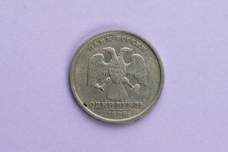 One russian Ruble coin on purple background