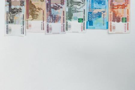 Russian rubles cash on white background with copy space