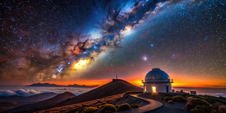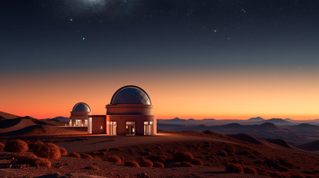 Mountaintop Observatory at Sunset with Milky Way, generative Ai