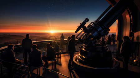 view of observatory with telescope in view, surrounded by night sky, created with generative ai