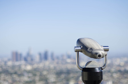 Los Angeles View Point with Binoculars. Los Angeles At Night.