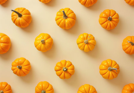 Orange pumpkins arranged on a soft beige background, creating a warm autumn atmosphere Ideal for fall decorations and seasonal themes Perfect for harvest related designs