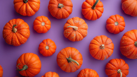 Vibrant Orange Pumpkins on Purple Background: Autumn, Harvest, Halloween, Decor