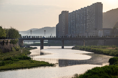 Landscape of the river and the city, Luannan County, Hebei Province, China