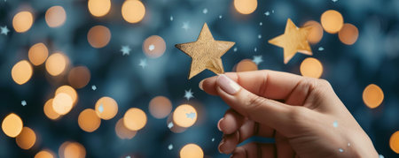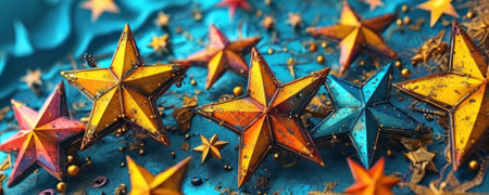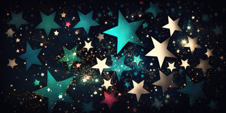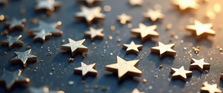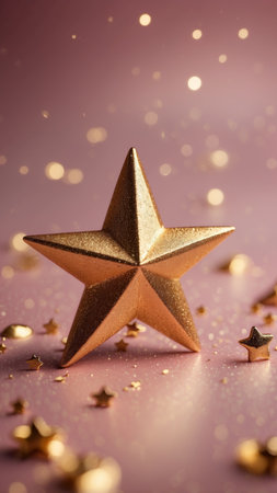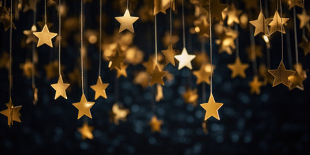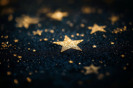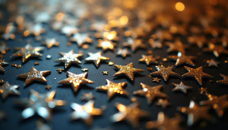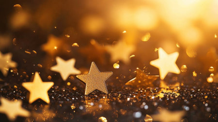 This captivating image features golden stars against a sparkling background, evoking a sense of celebration and joy, perfect for festive occasions or decorations.