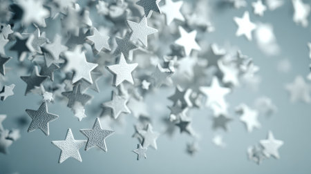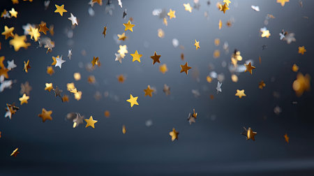 A captivating scene of golden and silver stars falling gracefully against a softly lit background, perfect for creating a celebratory and festive mood in designs.