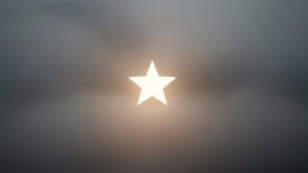 Against showing a luminous five-pointed star glows brightly against a soft gradient of orange and purple hues...