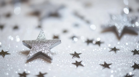 This image features shimmering silver stars scattered across a glimmering background, perfect for conveying a sense of magic and celebration in photography.
