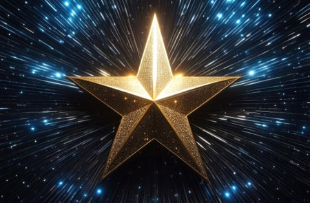 A radiant golden star glimmers against the endless expanse of space, its light streaming across the cosmos. A symbol of aspiration and wonder. Generated A.I.