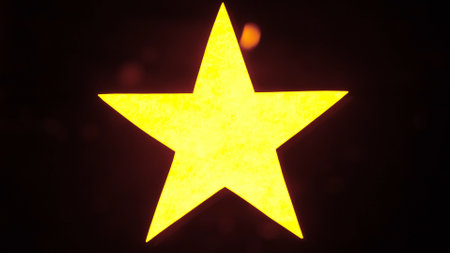 Sign template isolated on black background. Neon yellow star social media reaction symbol glow in the dark. Symbols for advertising projects and creative screensavers.