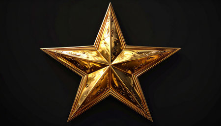 Golden star symbol shines on dark metallic background, luxury celebration generated by artificial intelligence