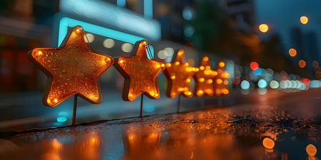 Star shapes shimmer softly in warm tones, contributing to a lively setting perfect for evening events or celebrations, adding charm to the space