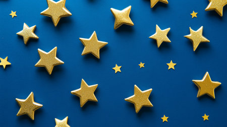 Gold stars scattered on a royal blue background, a festive and comfortable look generative ai