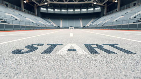 3D render of an empty stadium with start sign on the floor