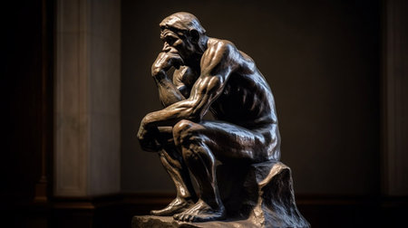 Stone statue of male figure standing outdoor. Concepts: historical monument, contemplation and wisdom, heritage preservation. AI Generative.
