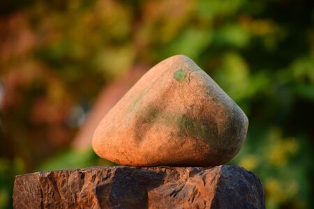 Big stone alone on the rock ground with blurry mountain is in the background which can be used as an conceptual ideas.
