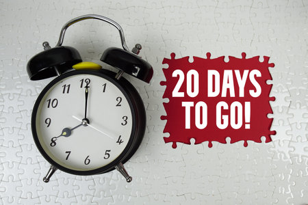 20 Days To Go! text with alarm clock on red background
