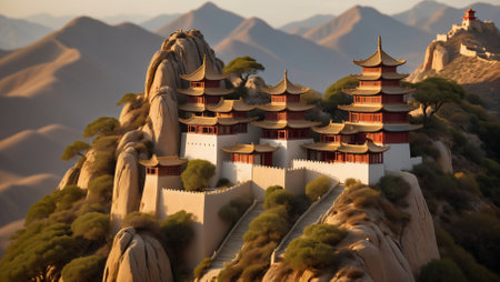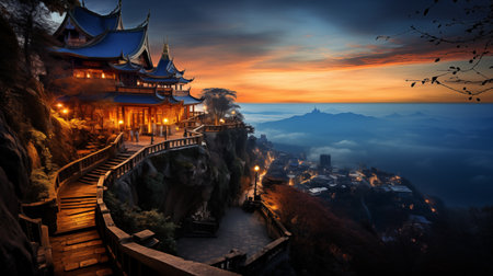 Landscape of a chinese temple on the top of a mountain