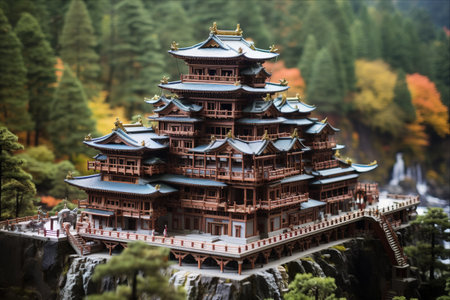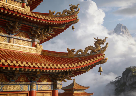 Chinese temple, Buddhist temple. Generative AI