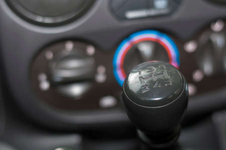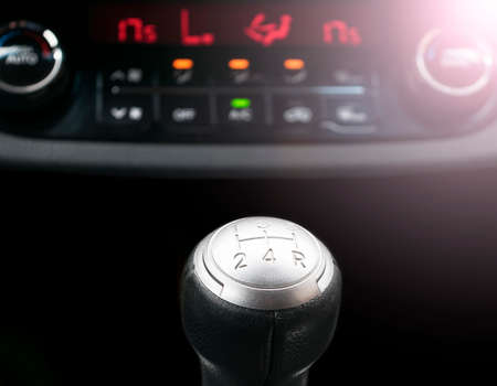 Abstract view of a gear lever, manual gearbox, car interior