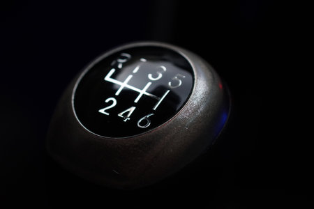 manual gearbox in the car macro black
