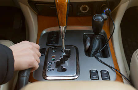 Gear shift, automatic transmission gear of car , car interior.