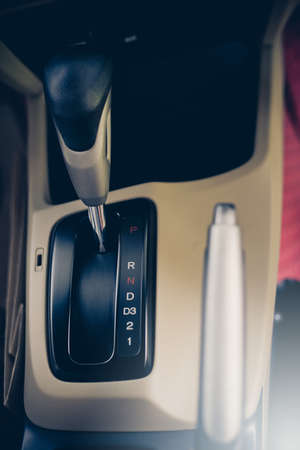 Automatic gear stick inside modern car for background