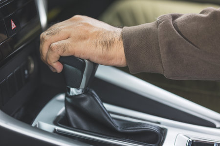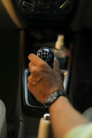 Detail of a driver hand shifting the gear stick