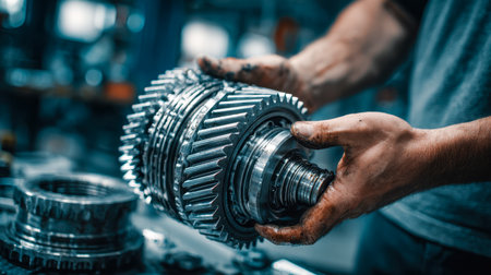 An intriguing photo capturing the intricate beauty of mechanical gears in motion, showcasing the essence of industrial engineering