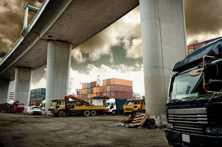 Nhava Sheva, India - March 09: Motor trucks in port of Nhava Sheva on March 09, 2018 in Nhava Sheva, India.