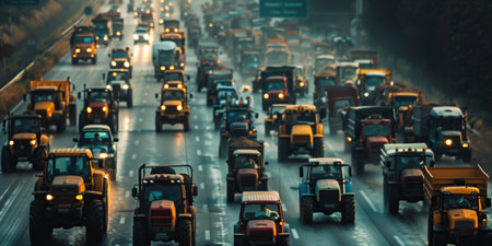 farmers' strike, a huge number of tractors blocked the highway and state border.