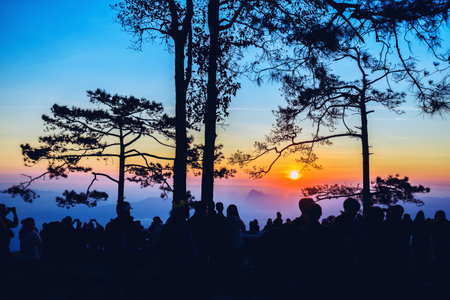 People watching Sunrise in the morning. Tourists travel relax in the holiday. photograph sunrise in the morning among people. Thailand