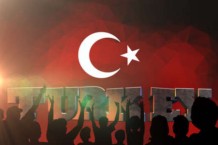 Silhouetted hands waving turkish flags against a vibrant sunset sky, celebrating national pride and unity