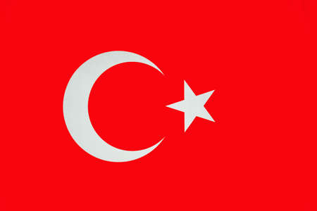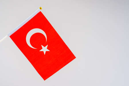 Turkish flag on a white background. Official flag of the Republic of Turkey. Red banner with a star and a month. Official symbols of Turkey. Flags of the world.