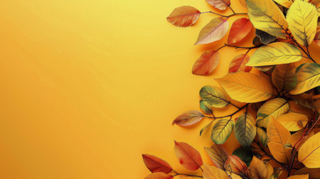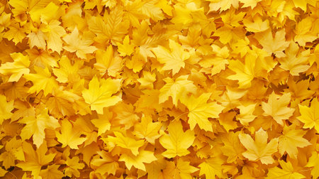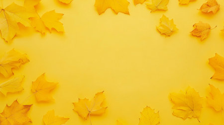 Vibrant yellow autumn leaves scattered on bright yellow background.