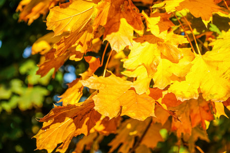 Autumn colorful foliage of maples during leaf fall, beautiful foliage of maple trees in the autumn season
