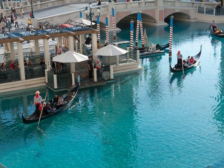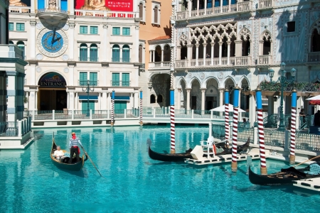 LAS VEGAS - FEBRUARY 7: Gondola, river, and Shops Inside the landmark Venetian Hotel in Las Vegas which is a replica of the Italian lifestyle February 7, 2010 in Las Vegas, Nevada.