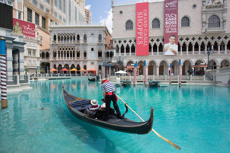 LAS VEGAS, NEVADA - MAY 7, 2014: Venetian Palazzo Resort Casino with Grand Canal and gondola in view. This luxury hotel opened in 1999.
