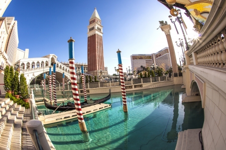 LAS VEGAS - JAN 05 : The Venetian hotel and replica of a Grand canal in Las Vegas on January 05, 2014. With more than 4000 suites it`s one of the most famous hotels in the world